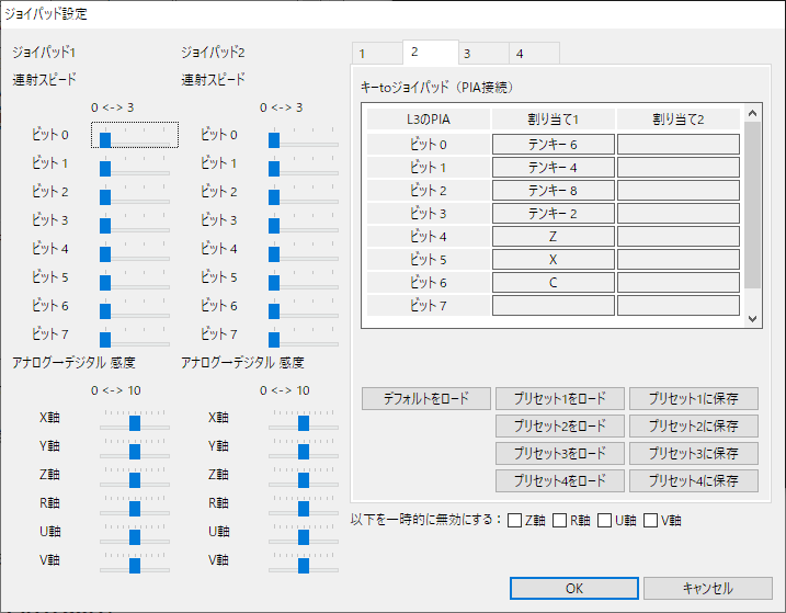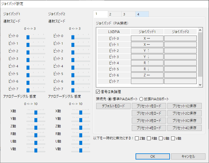 1. ジョイパッド(PIA接続)(Joypad (PIA Type))の以下の設定がこちらにも適用されます。