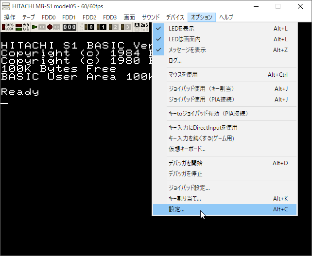 FDDを使用する場合は、メニューのFDDタイプ(FDD Type)、または、Alt(左option)+FでどのFDDを使用するか選択した後、操作(Control) → パワーオン(PowerOn) をおこなうか、このソフトを再起動してください。